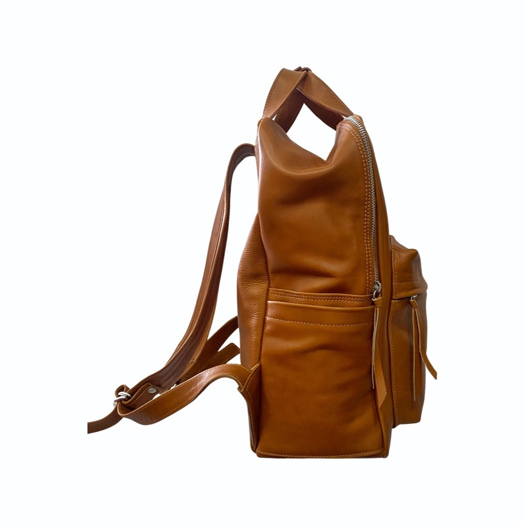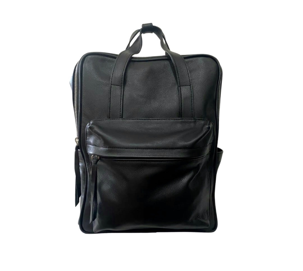 Mochila confeccionada íntegramente en cuero genuino. Totalmente forrada, con bolsillo interno y bolsillo externo al frente para una organización práctica y funcional.